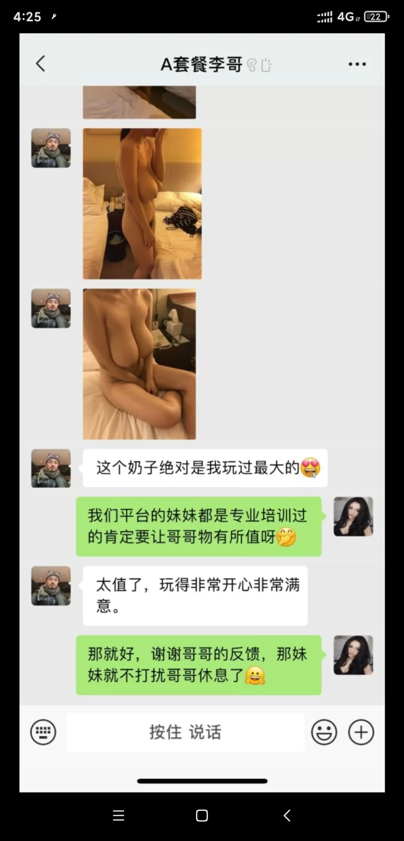 朋友介绍去的,开车十几分钟到了地方拿了手牌洗了个澡直接上了楼说按摩,不让带手机,领进一个大床房带卫生间,过一分钟妹子就进来了,170的个头,问了才24岁,湖北人,期间很听话,让怎么就怎么就是想让你加钟,能聊的过去可能会私下开大。由于不让带手机没有妹子照片供大家看。